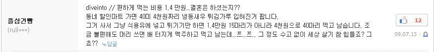 https://n.news.naver.com/article/586/0000054684?sid=101 ㄹㅇ 칰힌 1마리 2만원 시대에 돌입!!! 이미 배달비 포함하면 2만원이 넘긴했지만서도 ;; 마트가면 닭도리탕 전용으로 조각내서 파는 닭이있는데 이게 보통 5천원 ~ 7천원 사이 왔다갔다합니다. 치킨집에서는 이거보다 더 싸게 닭을 사올텐데 염지하고 튀기고 소스좀 발랐더니 19000원이 되는 기적!!!! 0
