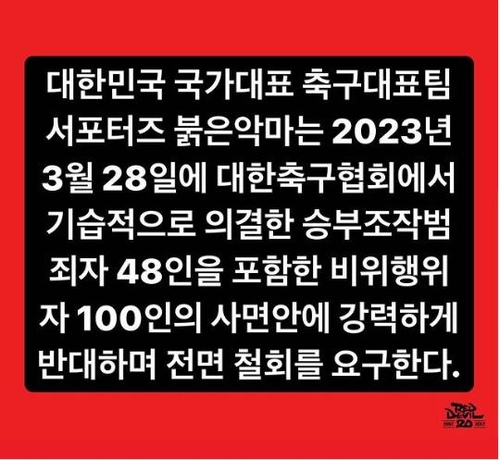 스포츠[공식발표] KFA, '100인' 사면 관련 "현장 의견 반영...명단 공개 불가" 2 |