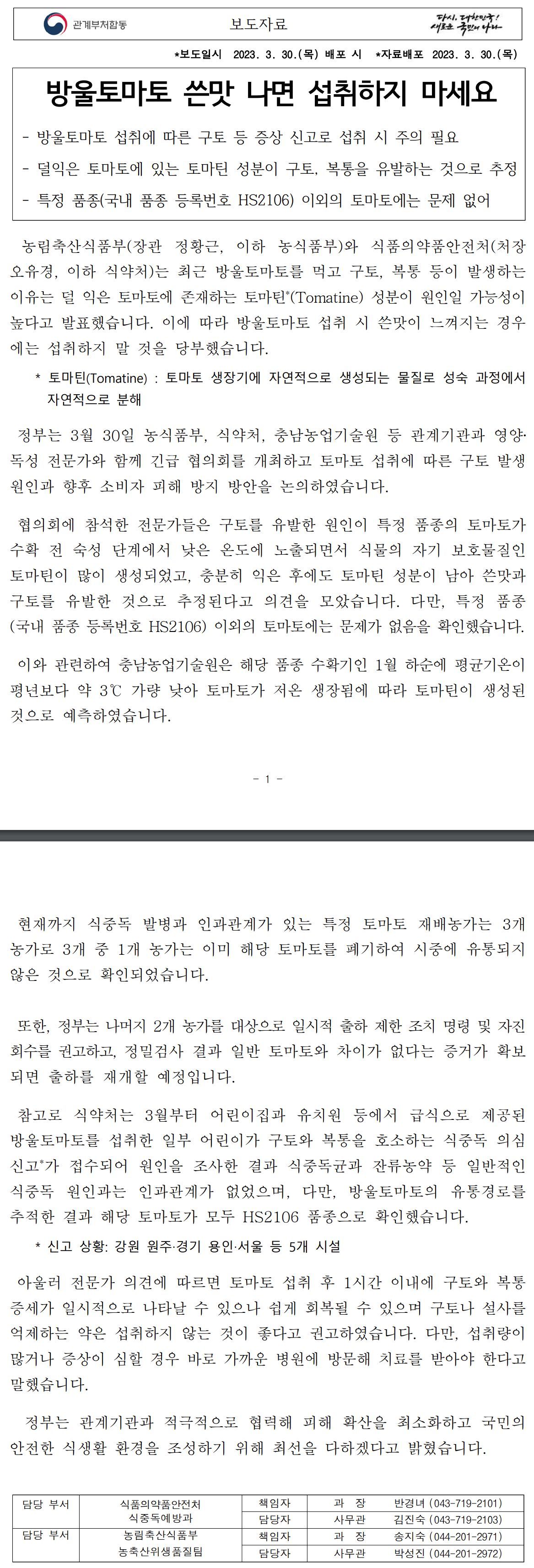기타방울토마토 구토는 '토마틴' 성분 탓…"한파로 특정품종서 과다"(종합) 16 |
