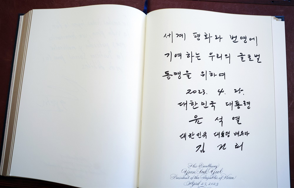 | Subject | 윤석열 - 김건희의 백악관 방명록 연명 서명 |