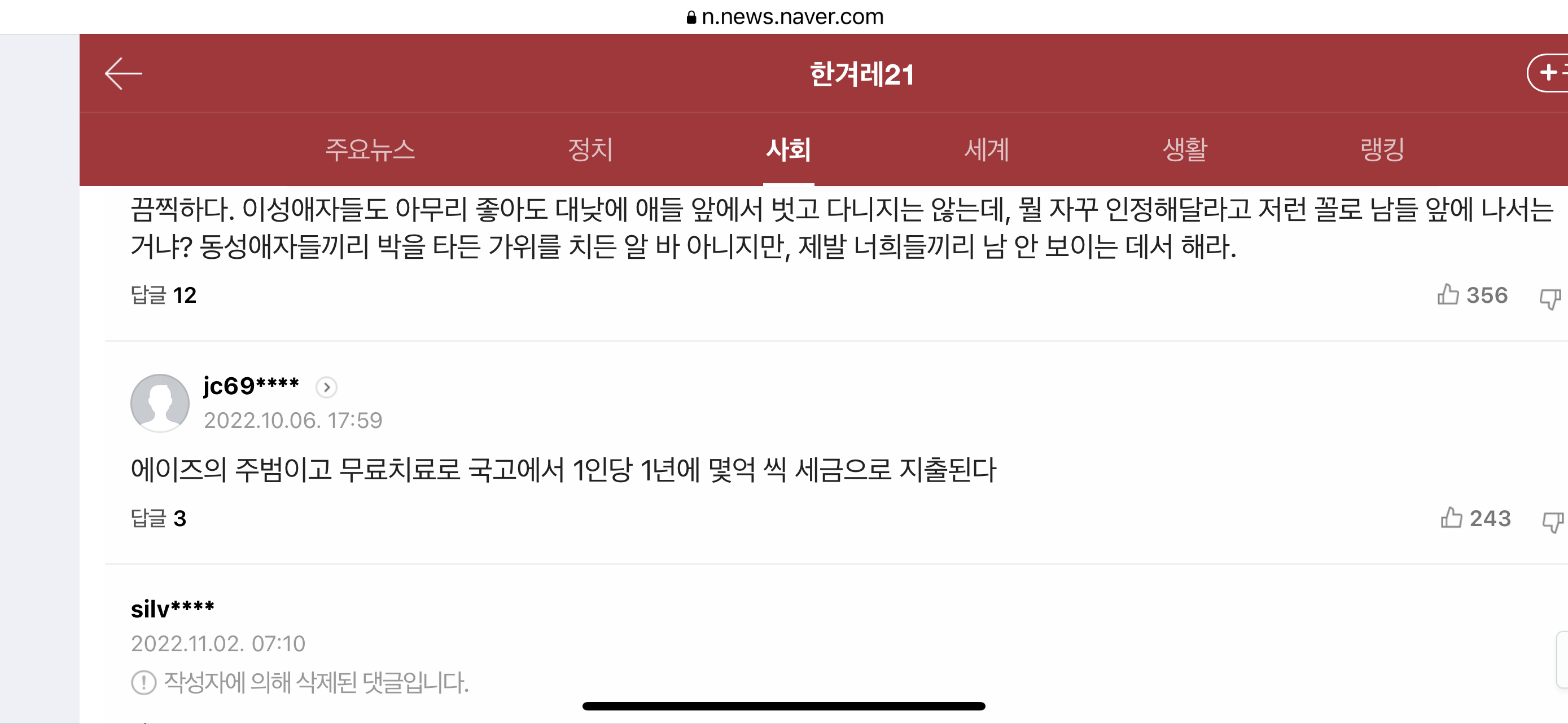 https://n.news.naver.com/article/036/0000047109 할말은 많은데...글이 너무 길어질까봐 다 그만두고 그냥 남들이 사랑하건 결혼하건 다 자유롭게 놔뒀으면... 2