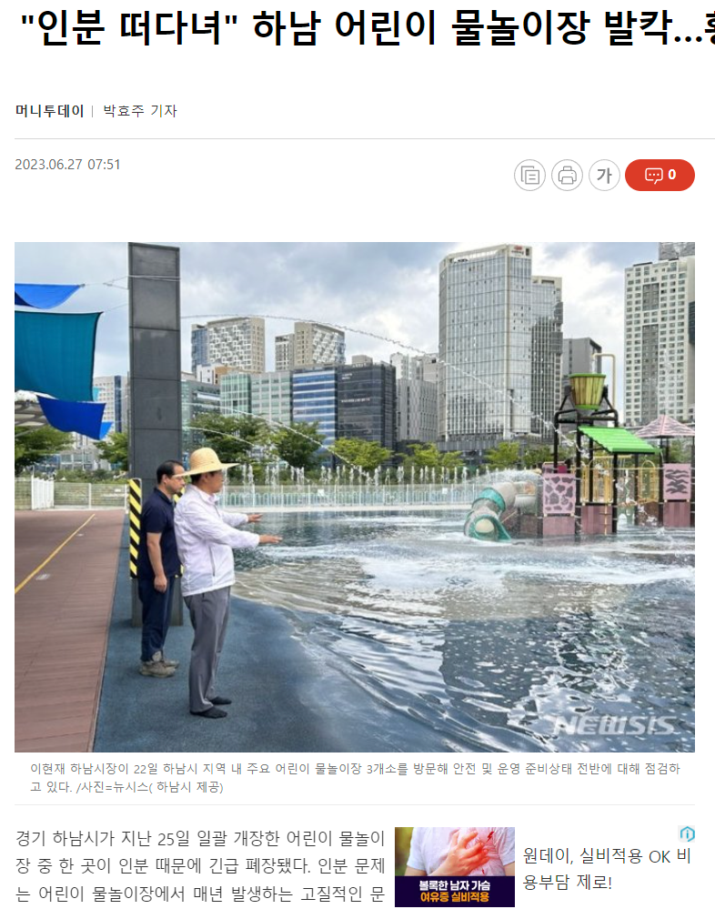 Subject   "인분 떠다녀" 하남 어린이 물놀이장 발칵…황급히 폐장