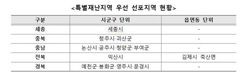 피해집계가 다 되고나면 특별재난지역 으로 선포될것이 확실시 되는 지자체들을 선정하여 먼저 선정했다고 합니다.