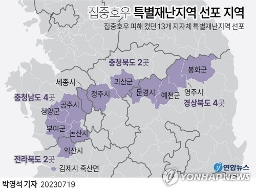 尹, 예천·공주·논산·청주·익산 등 13곳 특별재난지역 선포
