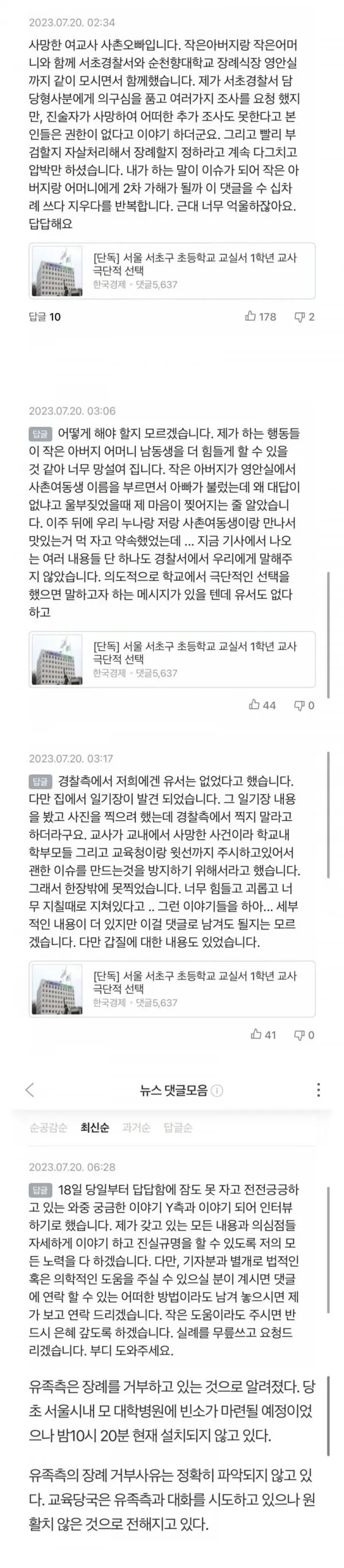 | Subject | 서울 초등교사 유족 "학부모 마찰 여부 수사해 달라" |