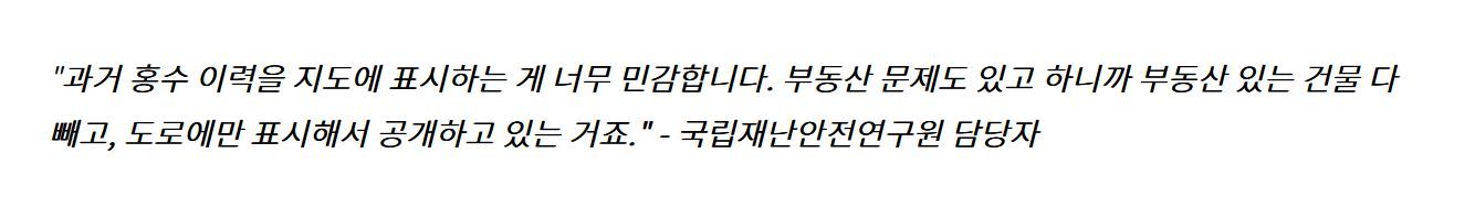 https://www.yna.co.kr/view/AKR20230801057400003 안전과 집값.... 재난안전관련 통계도 집값 때문에 공개와 활용에 한계가 있었던 기억이. https://news.kbs.co.kr/news/view.do?ncd=5062775 https://www.safemap.go.kr/main/smap.do?flag=2# https://www.yna.co.kr/view/AKR20230801104000003 0
