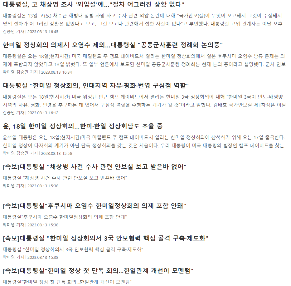 | Subject | 대통령실 "채상병 사건 수사 관련 안보실 보고 받은바 없어" |