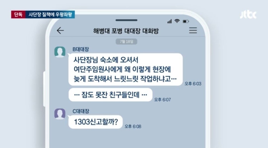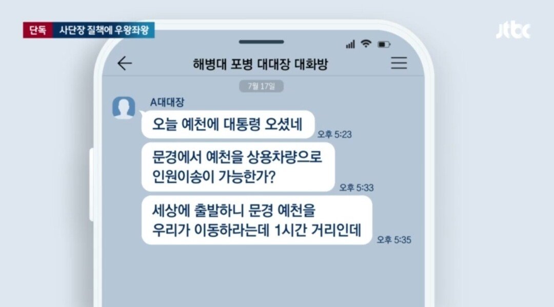 | Subject | "사단장이 숙소까지 와 질책"…사고 당일 대대장들 '우왕좌왕' |