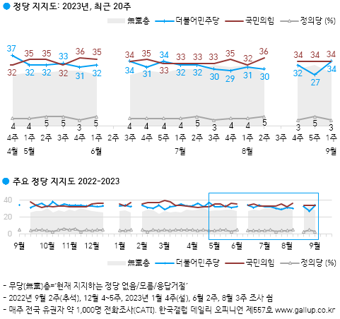 | Subject | 윤 대통령 지지율 33% 횡보…민주 7%p 올라 국힘과 34% 동률 |