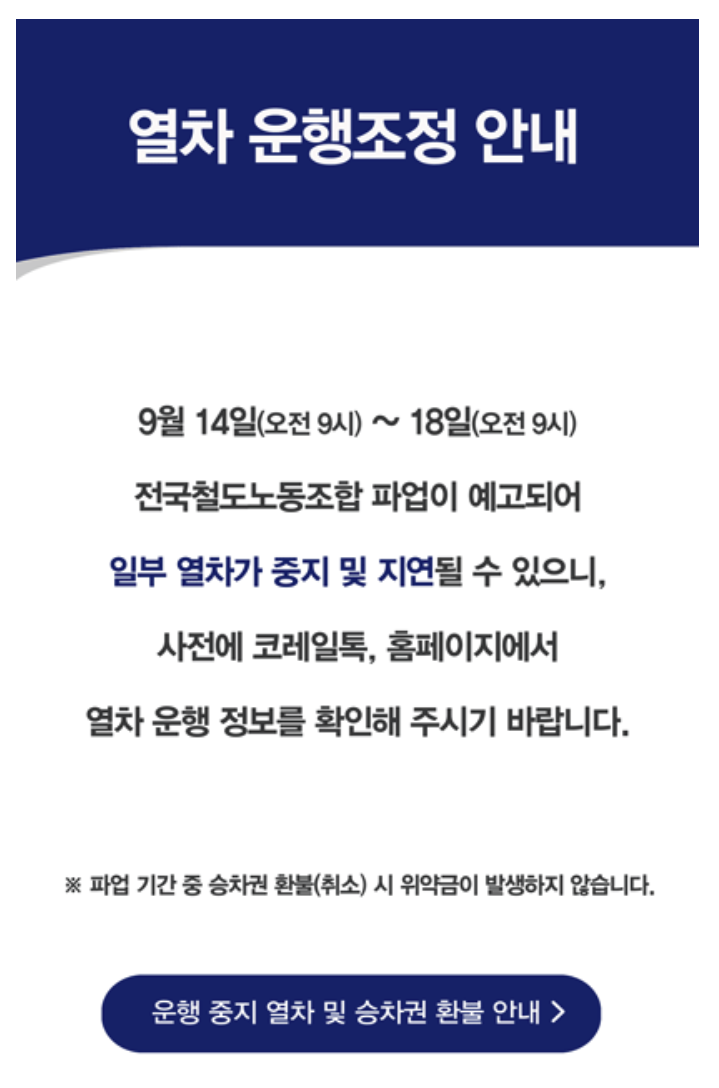 철도 이용 계획이 있으시면 대체 교통편 등을 고려하셔야 할 것 같습니다.