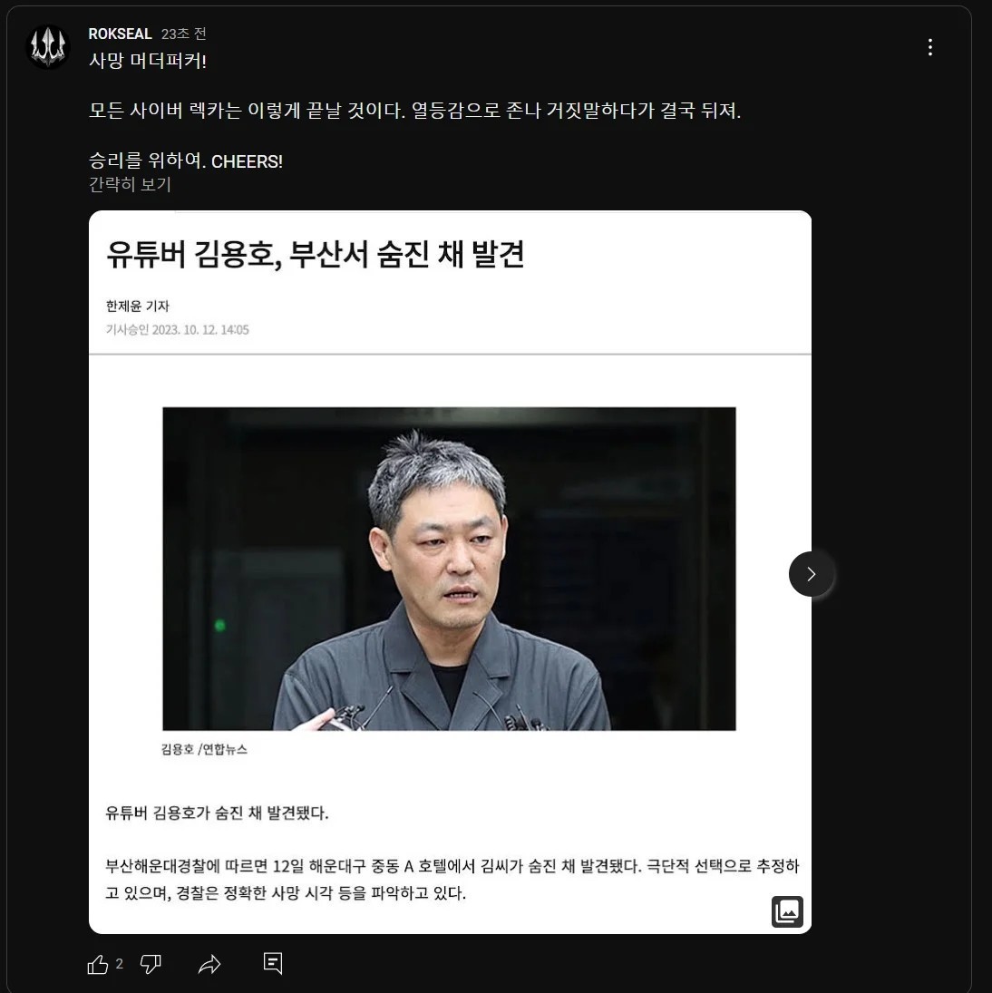 유튜버 김용호, 부산 호텔서 숨진 채 발견 “죄송하다”