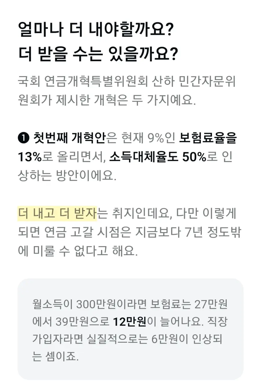 https://n.news.naver.com/article/001/0014335150?sid=102 이대로 결정나고 강행할거라는 생각은 안들지만 더 내고 덜 받는걸 누가 환영할지 모르겠네요. 0