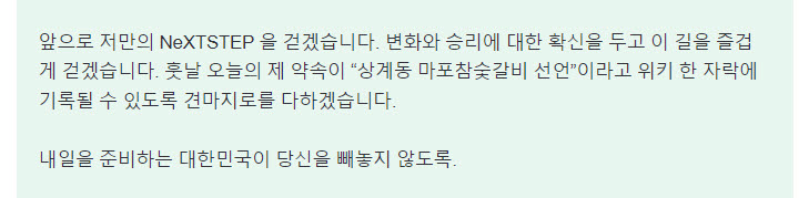 본인 뿐만 아니라 기존 정치인들에게 경각심을 줄 수 있도록 제3지대 사람들이 잘 되었으면 좋겠습니다.