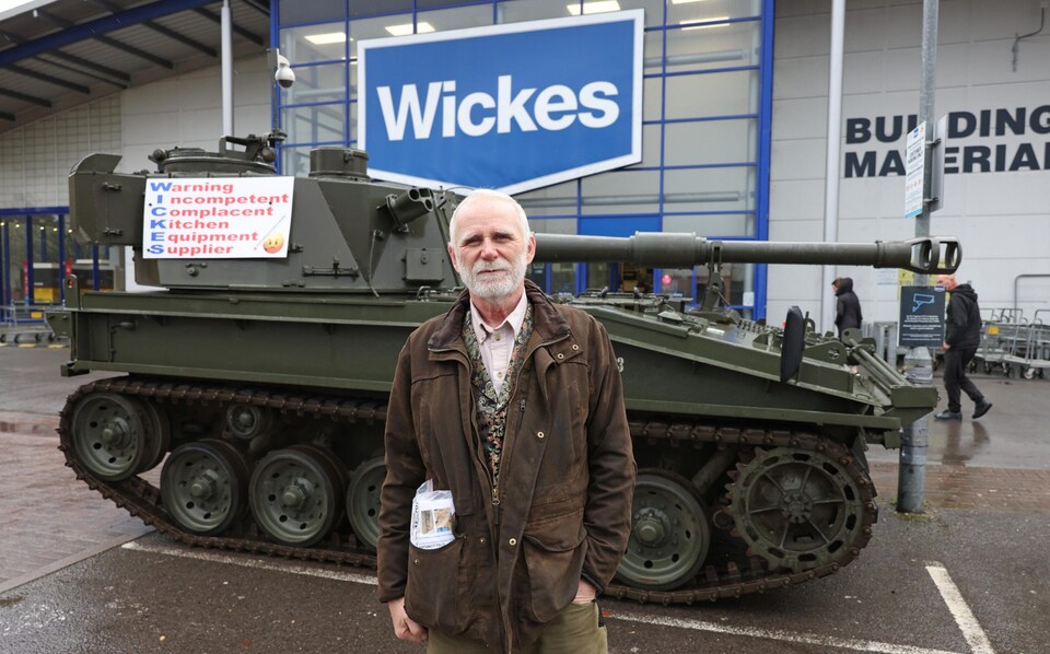 국제인테리어 공사 불만 영국 60대, '탱크' 끌고 가 1인 시위 5 |
