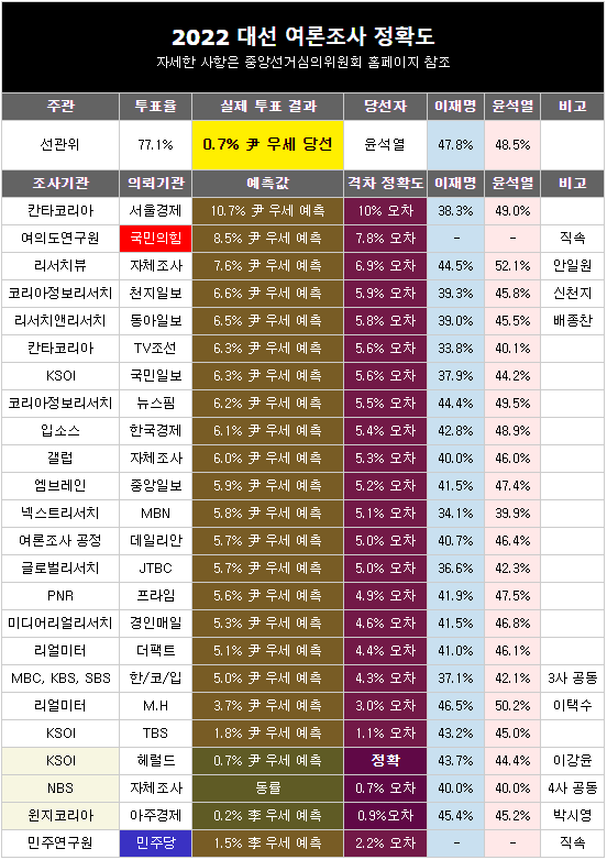 지역구 투표, 국힘 43.2% 대 민주 41.7%…49주 만 역전 https://www.newstomato.com/ReadNews.aspx?no=1220118 尹대통령, 지지율 39.5%…3주 연속 상승 https://m.ekn.kr/view.php?key=20240218027589592 국힘 44.3% 민주 37.2%…尹정부 안정 46.3% 견제 45.9% https://m.nocutnews.co.kr/news/amp/6097108 위에서부터 각각 미디어토마토, 리얼미터, ksoi에서 실시한 여조입니다. 모두 Ars rdd방식이며 아래로 갈수록 오래된 조사이지만 (위에서부터) 오늘, 어제, 그제 발표된 조사들. 저는 이제는 민주 우위 국힘 열세 구도가 이제는 해소되었다고 보는 쪽이고 특히 국힘이 적합도 조사를 하니까 당분간 국힘 여조가 더 높게 나오고 어쩌고 하는 소리는 다 근거 없는 주장이라고 생각하는 편인데 국힘만 여조를 돌리는건 아니고 민주도 어쨋든 여조를 돌리고 있으며 지난 대선때도 국힘 경선기간에 올라간 국힘 지지율이 경선 끝나고 하락하는 징후는 없었기 때문입니다. 뭐 이런저런 이유로 보수가 과표집되었기 때문에 그런거라고 하는 분들도 계시겠지만, 그냥 국힘이 상승세라서 숨어있던 보수지지층이 활성화되었을수도 있다는게 제 생각입니다. 제가 보기엔 국힘이 최근 공천이 '생각보다' 매우 잡음없이 굴러가고 있고 민주당의 거의 모든 구성원들이 최근의 이러한 정세에는 1도 관심을 보이지 않고 오로지 내가 공천을 받을지 못받을지 여부에만 관심이 있기 때문일듯. 물론 공천과정이 아직 양당모두 한참 남았으며 공천이 끝난뒤에도 최소한 두어번의 변곡점이 더 있을것입니다. 하지만 오늘 총선이 있었다면 제1당이 민주당이라고 담보할수 없는 박빙의 판세였겠다 하는데 제 생각입니다. 물론 승부는 아모른직다. 이겠지만 0