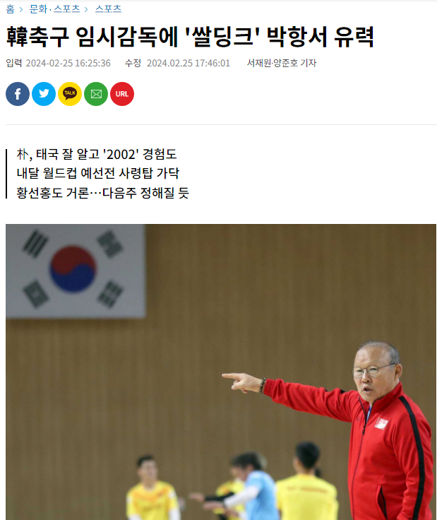 스포츠韓축구, 임시감독에 '쌀딩크' 박항서 유력 8 |