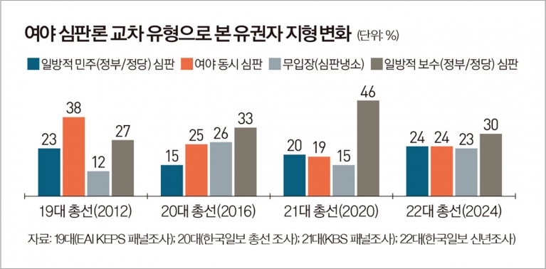 개인적으로 제일 인상깊었던 부분은, 양당 동시 심판론자들이 생각보다 적다는 지적입니다.