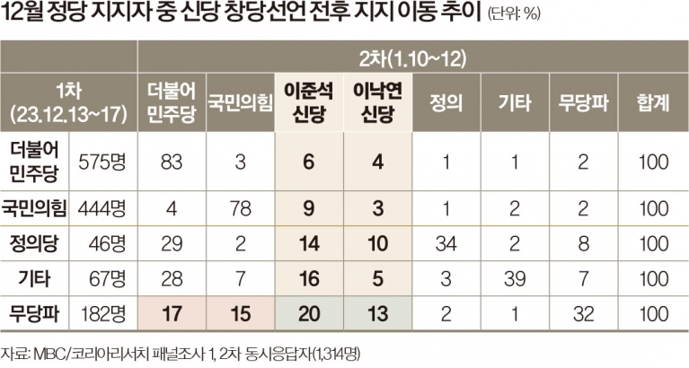 한국 정치의 역동성을 고려할 때 신당의 성과를 섣불리 단정하기는 어렵다. 2016년 총선 당시 한국일보 조사를 보면 1차 조사 시점인 2월에 더불어민주당 지지율은 16%, 국민의당 지지율은 7%에 불과했다. 하지만 3~4월 새누리당 공천 파동을 거치며 더불어민주당 지지율은 30%, 국민의당 지지율은 20%까지 치솟았다.