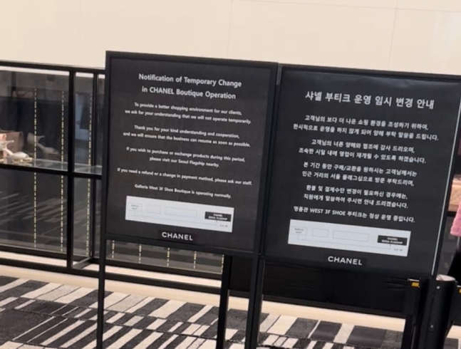 Subject   샤넬, 압구정 갤러리아 매장 영업 임시 중단… “구찌 팝업 때문”