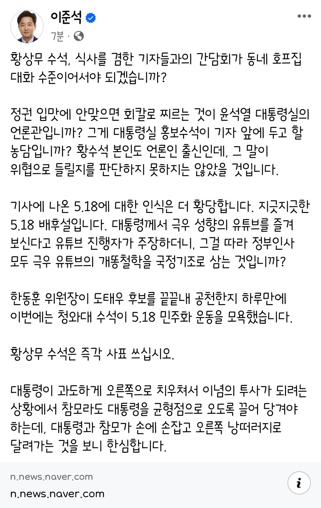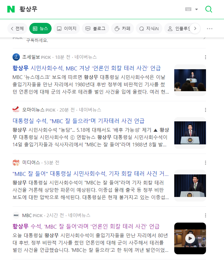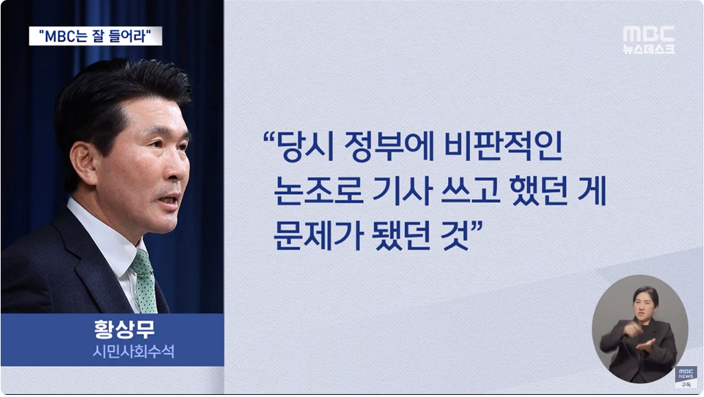 Subject   황상무 수석, 'MBC 잘 들어'라며 '언론인 회칼 테러 사건' 언급