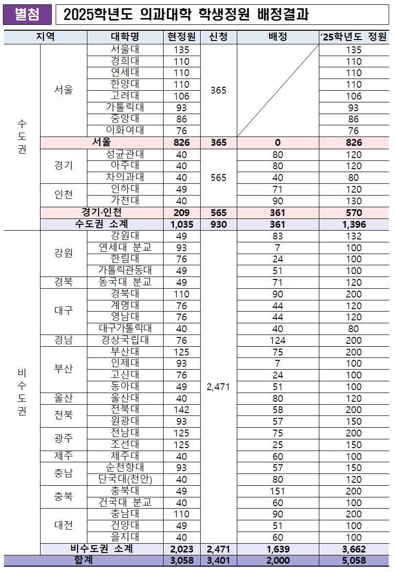Subject   내년 의대 증원 서울 '0명'…경인권 361명·비수도권 1639명