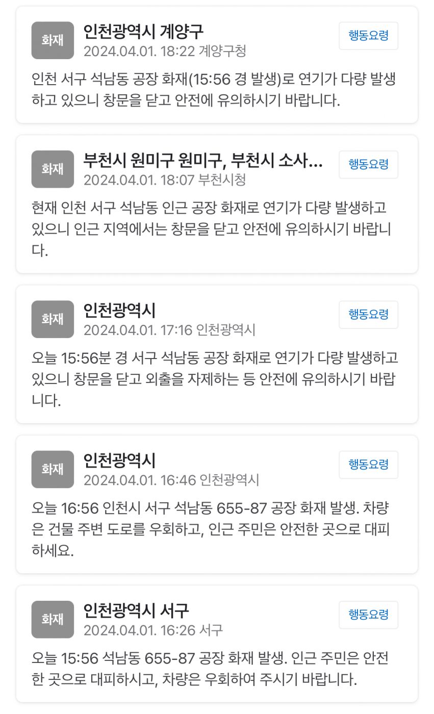 인천 자동차 부품 공장서 화재…대응 1단계 발령