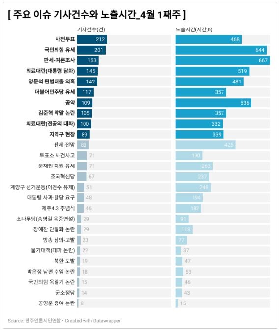 정치투표 앞두고 조국혁신당 보도량 급락, 민주당 네거티브 보도 증가 13 |