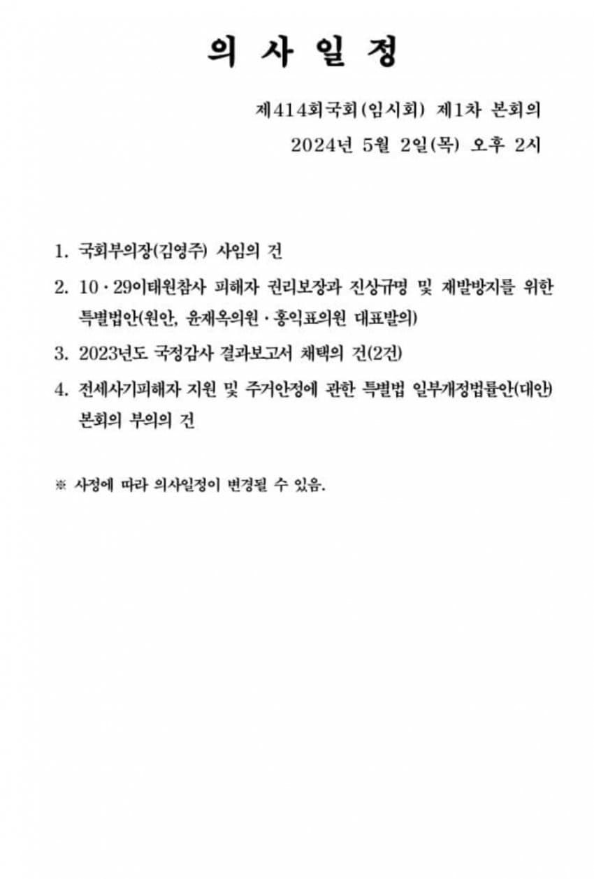 | Subject | 여야 또 파행…'채상병특검법' 단독 처리에 국힘 "거부권 요청" |