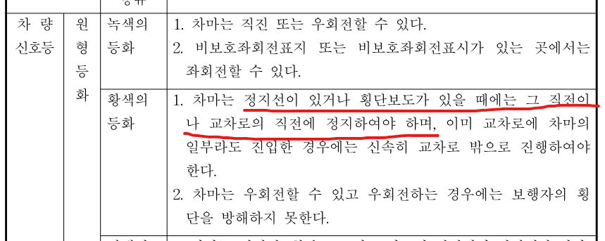 https://n.news.naver.com/article/001/0014682975?sid=102 그는 제한속도를 시속 20㎞를 초과해 주행하던 중 황색신호가 켜졌는데도 정지하지 않고 교차로에 진입했다가 사고를 냈다. 그러나 대법원은 "교차로 진입 전 황색 신호로 바뀐 이상 차량 [정지거리가 정지선까지의 거리보다 길 것으로 예상되더라도 교차로 직전에 정지하지 않았다면 신호를 위반]했다고 보는 게 타당하다"며 하급심 판단을 뒤집었다. 대법원은 "차량이 교차로에 진입하기 전 황색 등화로 바뀐 경우 정지선이나 교차로 직전에 정지해야 하며 운전자가 정지 또는 진행할 것인지 여부를 선택할 수 없다"는 선행 대법원 판결을 근거로 들었다. 엥. 불가능한 일을 하라고 하시네요. 어쨌든 노란불 뜨면 풀브레이크 하시라고 합니다. 뒤에서 박으면 어쩔 수 없죠. 0