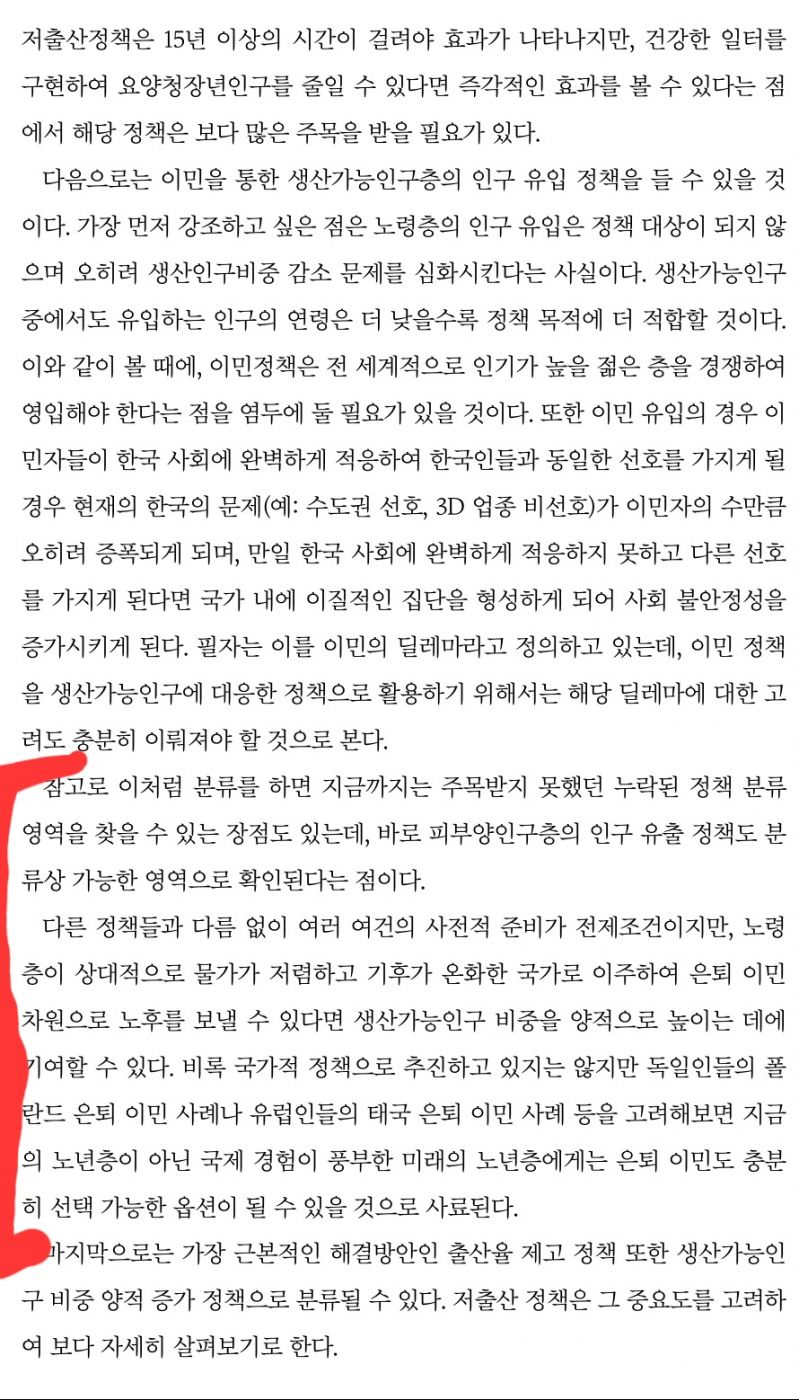 https://n.news.naver.com/article/032/0003299817?sid=102 2일 한국조세재정연구원 정기 간행물 <재정포럼> 5월호를 보면, 장우현 선임연구위원은 ‘생산가능인구 비중 감소에 대응하기 위한 재정정책 방향에 대한 제언’에서 한국의 인구 문제를 생산가능인구 감소로 정의하고 생산가능인구를 늘리기 위한 방안 중 하나로 ‘은퇴 이민’이라는 개념을 제시했다. https://www.redtea.kr/news/38087 위 뉴스와 같은 소스에서 나온 내용 같읍니다? 0