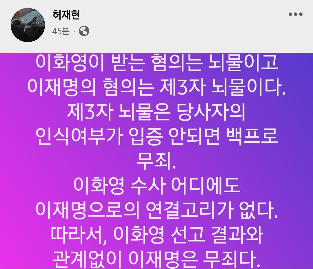 그와중에 이재명 지사가 직접 이건에 관련하여 이화영부지사로부터 보고를 받았다거나 이화영 부지사에게 지시를 했다거나 하는 부분에 대한 판단은 판결문에 없다는 내용도 어느 다른 기사에서 본듯도 하고? 아모튼 그렇읍니다.