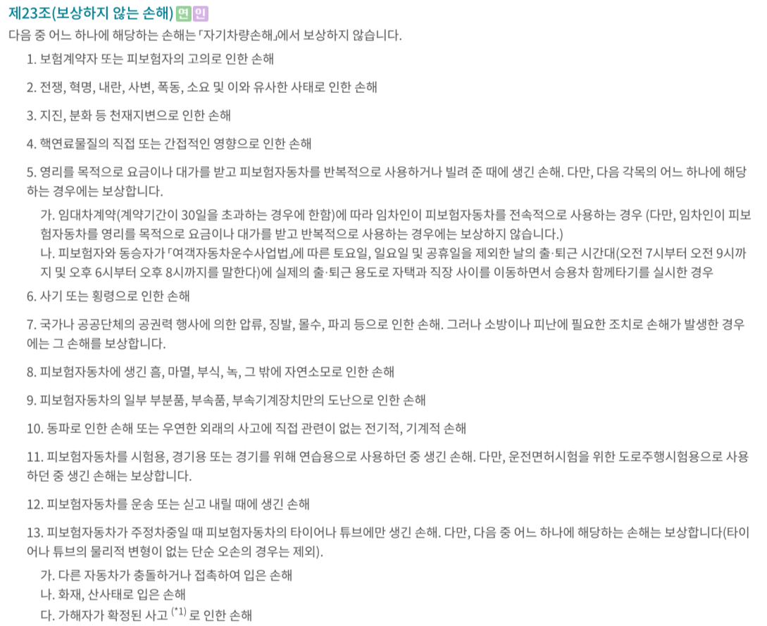 '지진, 분화, 해일, 전쟁, 외국의 무력행사, 혁명, 내란, 사변, 폭동, 소요, 기타 이들과 유사한 사태' 식으로 약관에 보험자 면책 사유가 적혀 있지만, 이번 경우는 자차 처리는 해주는 것 같습니다.  자기부담금 등은 여유 있는 지자체는 지원해 주려나요?  정부가 나서서 지원할 근거로 민방위법 등이 얘기되던데, 개정이 필요해서 시간이 걸릴 것 같습니다.