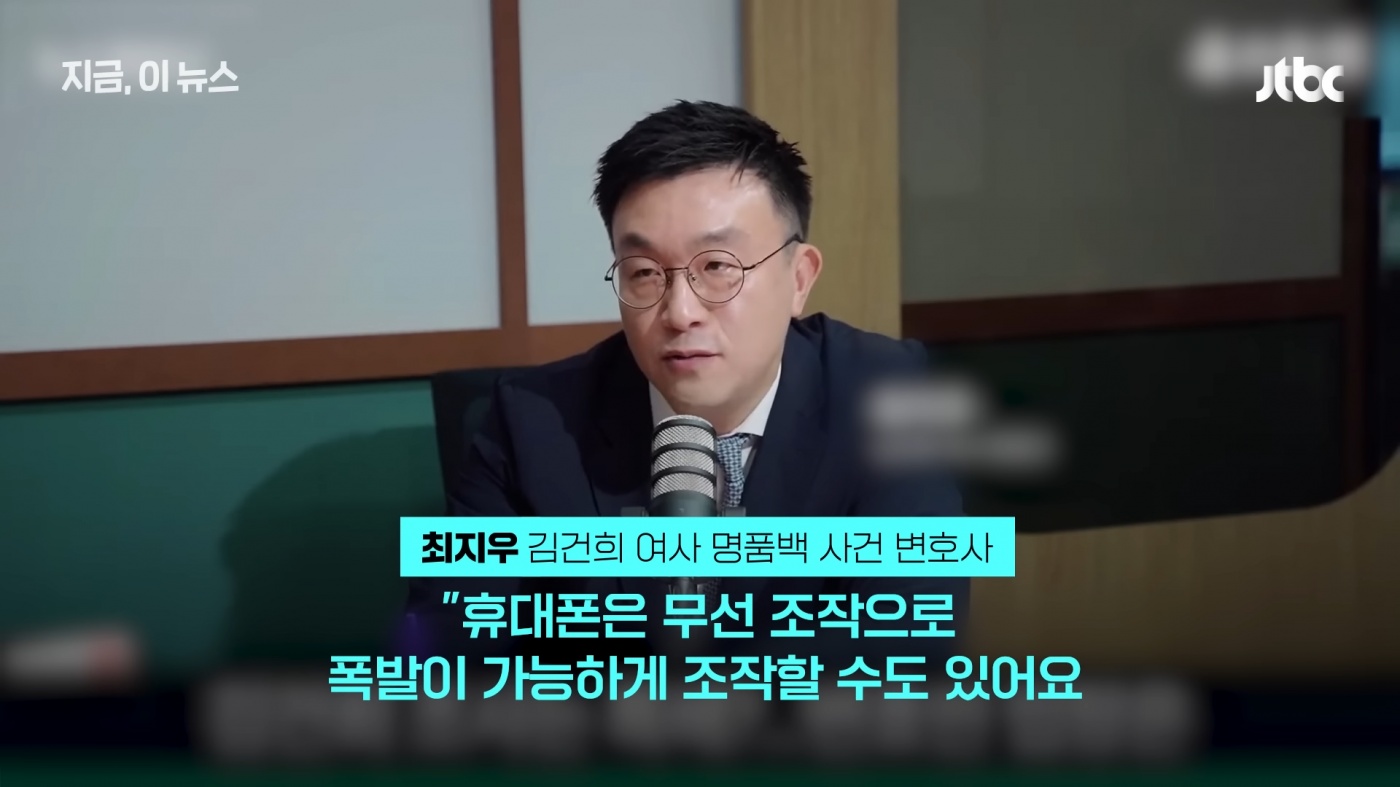 [최지우/변호사 (화면출처 유튜브 '매일신문') :첫 번째로는 녹음할 우려도 있고 그다음에 두 번째로는 그게 생중계할 수도 있잖아요, 전화기 켜놓고 하면. 그다음에 세 번째가 가장 중요한데 사실은 핸드폰은 무선 조작으로 폭발이 가능하게 조작할 수도 있어요. 신분이 확실한 사람이라도 누군가가 테러리스트가 검사님 이런 거가 조사를 받는다는 보안이 새는 경우에 거기에 폭발물을 설치할 수도 있기 때문에.]