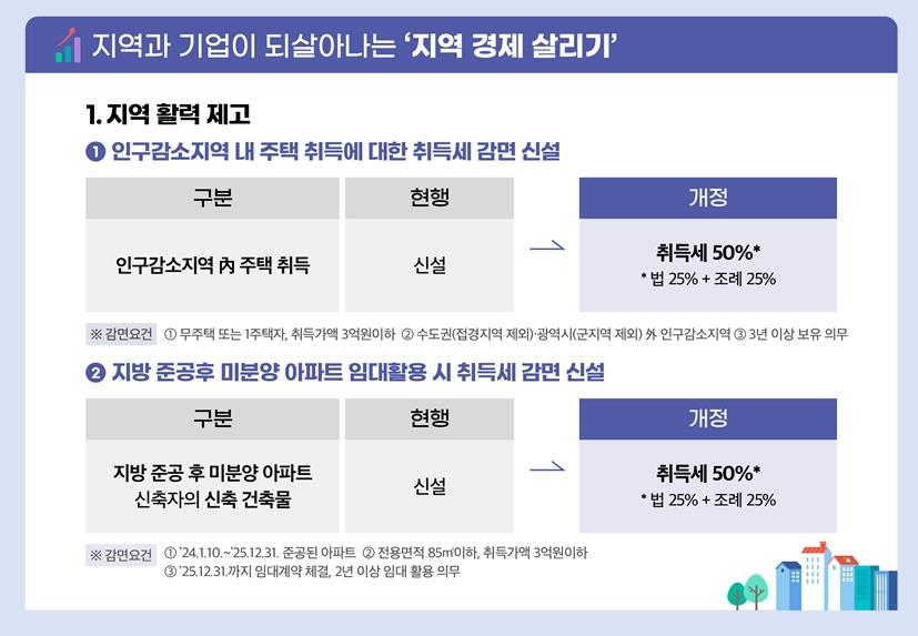 Subject   2자녀가정 차살때 세금 덜낸다…인구감소지역 주택취득세도 감면