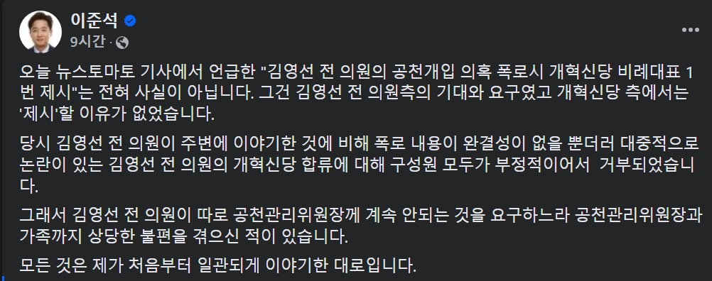 국힘 공천과정에서 자신의 영향력을 과대포장하려 한것 일수도 있지 않은가? 하는
