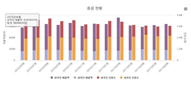 http://v.media.daum.net/v/20170723064009637?rcmd=rn 중국의 '사드 보복' 조치로 3월 중순부터 중국인관광객(유커) 수가 절반 가까이 줄었지만 면세점 전체 매출은 오히려 증가해 배경에 관심이 쏠린다. 유커를 포함한 외국인 관광객 수가 30% 이상 줄었지만 그 만큼 '보따리상(대리구매)'들이 구매금액을 2배 가까이 늘리면서 전체 '파이'는 줄지 않은 것으로 나타난 것으로 풀이된다. 0