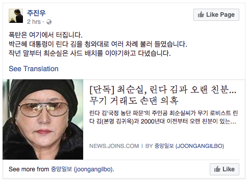 Subject   최순실, 린다 김과 오랜 친분…무기 거래도 손댄 의혹