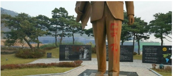 구미 박정희 동상에 ‘독재’ 낙서, 수사 中