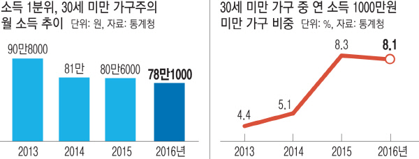 저소득 청년 가구가 증가한 통계상 이유는 개인주의 확산에 따른 1인 가구의 증가를 들 수 있다. 하지만 보다 근본적인 원인은 해결되지 않는 청년 비정규직 문제다.
