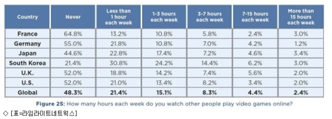 '이번 보고서는 한국, 프랑스, 독일, 일본, 영국, 미국에서 일주일에 최소 한 번 비디오 게임을 하는 18세 이상 게임 사용자 3천명을 대상으로 조사를 실시한 결과다.'라고 명시되어있으니까요.