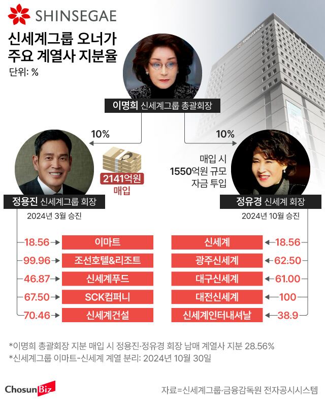 업계 관계자는 “신세계그룹의 이마트·신세계가 아니라 ‘정용진의 이마트’, ‘정유경의 신세계’ 등 독자 노선을 정리하겠다는 움직임”이라며 “이명희 총괄회장도 남매 각자의 경영 승계에 힘을 실어준 셈”이라고 했다.