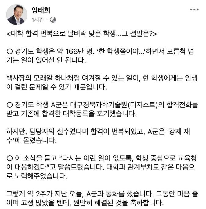 1051 사회'강제 재수' 몰린 수험생 구제받았다…DGIST 입학 결정 3 the 25/01/17 3903 8
