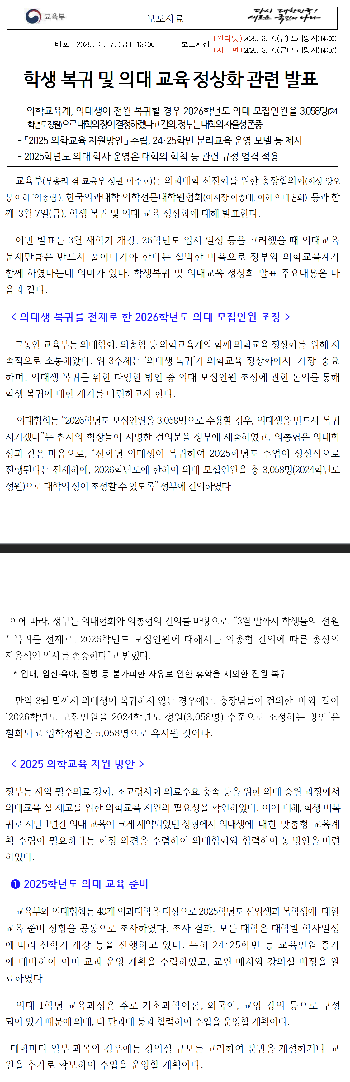 3월 내 전원 복귀 시라는 조건을 걸어놨고, 필수의료 패키지 철회 얘기는 없고(이건 보건복지부가 해야겠지만) 2027년은 또 어찌 되는지 모르겠어서. 어찌 될지?