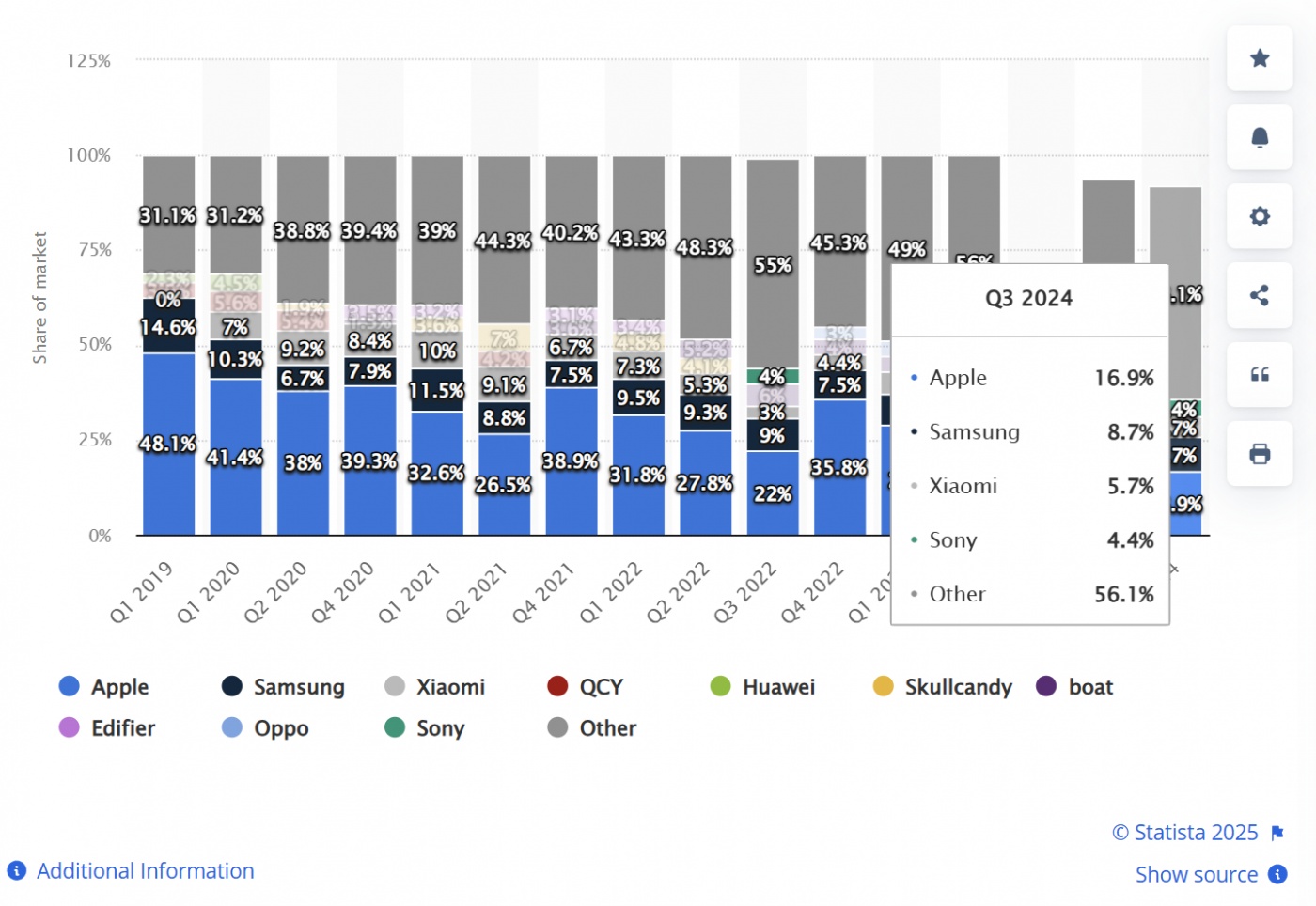 기사를 보고 놀랜 것이 갤럭시버즈가 출하량이 2위라는 것이였습니다.