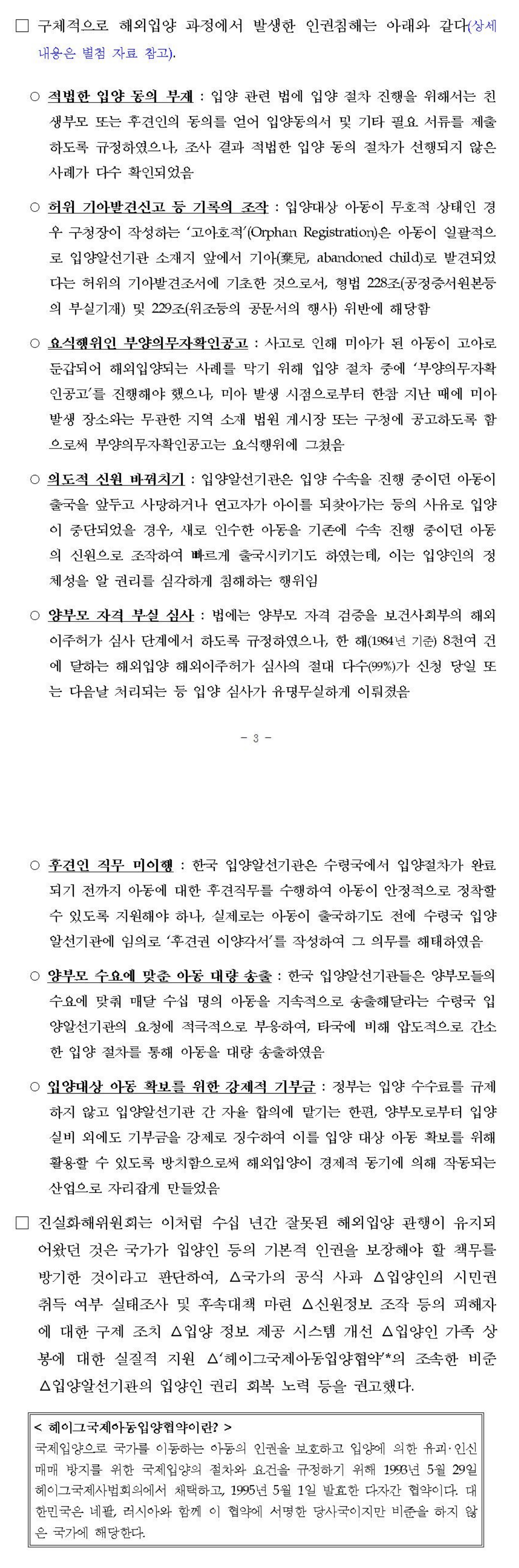 진실화해위 "미아를 고아로 조작해 해외 입양…정부 사과해야"