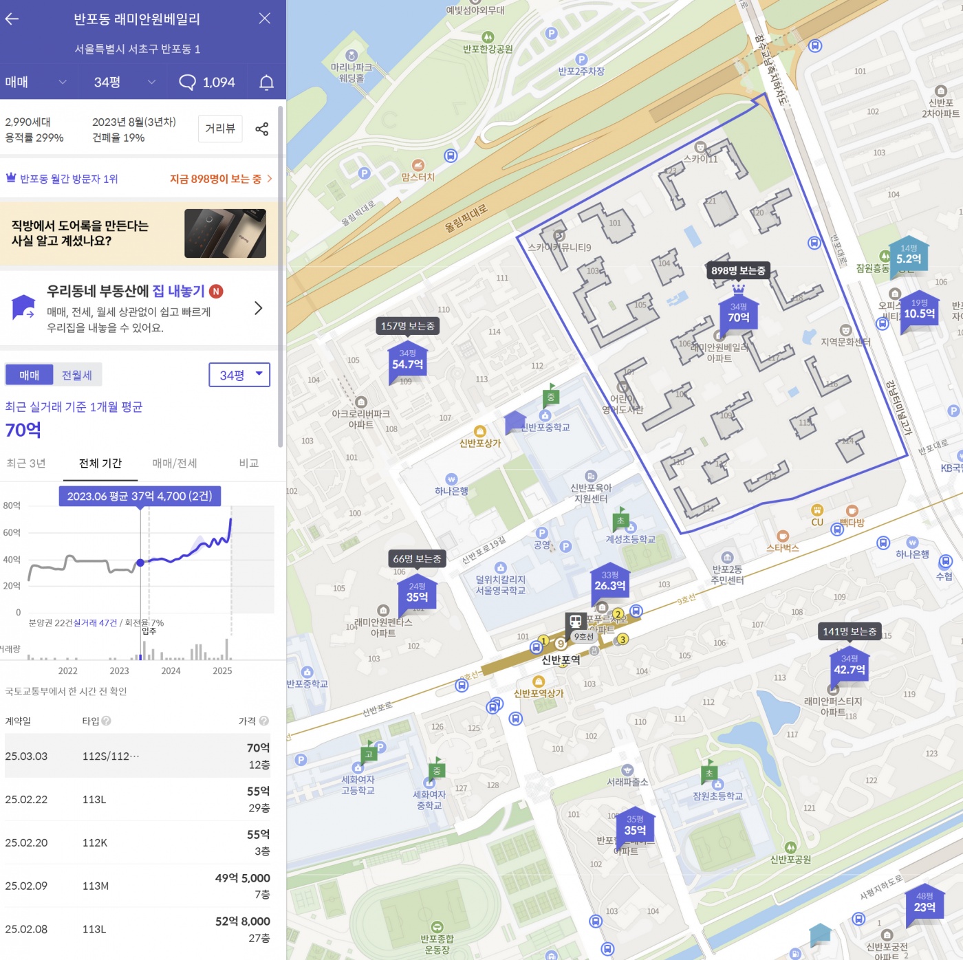 딴 얘기지만, 서초 반포 래미안 원베일리 국평(84제곱미터)이 국평 최초로 평당 2억원을 넘었다고 하더군요.