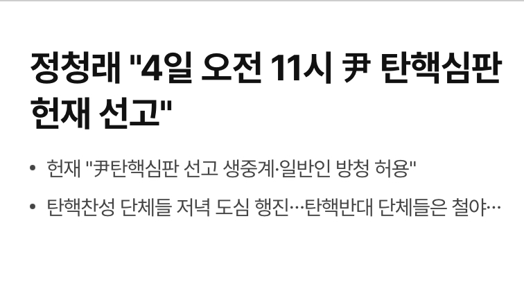1776 정치헌재, 尹대통령 탄핵심판 4월 4일 오전 11시 선고 34 다군 25/04/01 5132 4