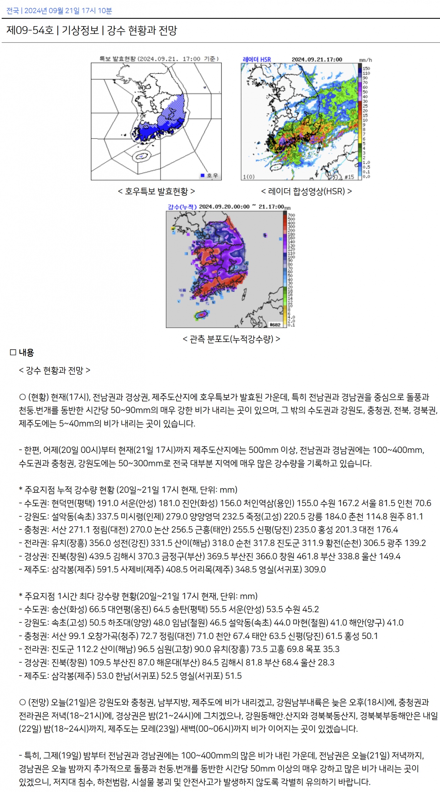 https://www.yna.co.kr/view/AKR20240921024851064 https://www.yna.co.kr/view/AKR20240921049400063 시원해진 것은 좋은데, 비가 너무 많이 오는 것 같군요. 비 피해 없도록 조심하십시오. 0
