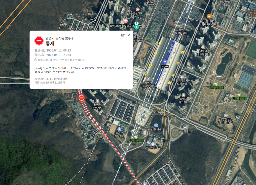 KTX 광명역 코앞인데 저도 종종 지나가는 길이라 기분이 참 묘합니다.