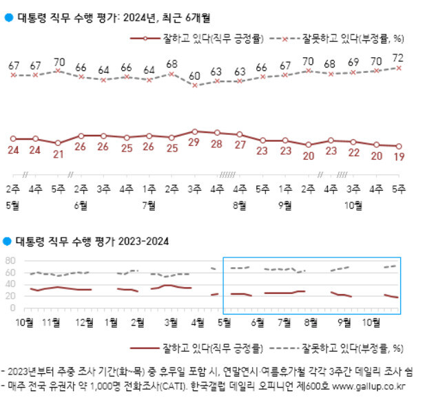 윤 대통령 지지율 첫 10%대…19%로 취임 후 역대 최저치